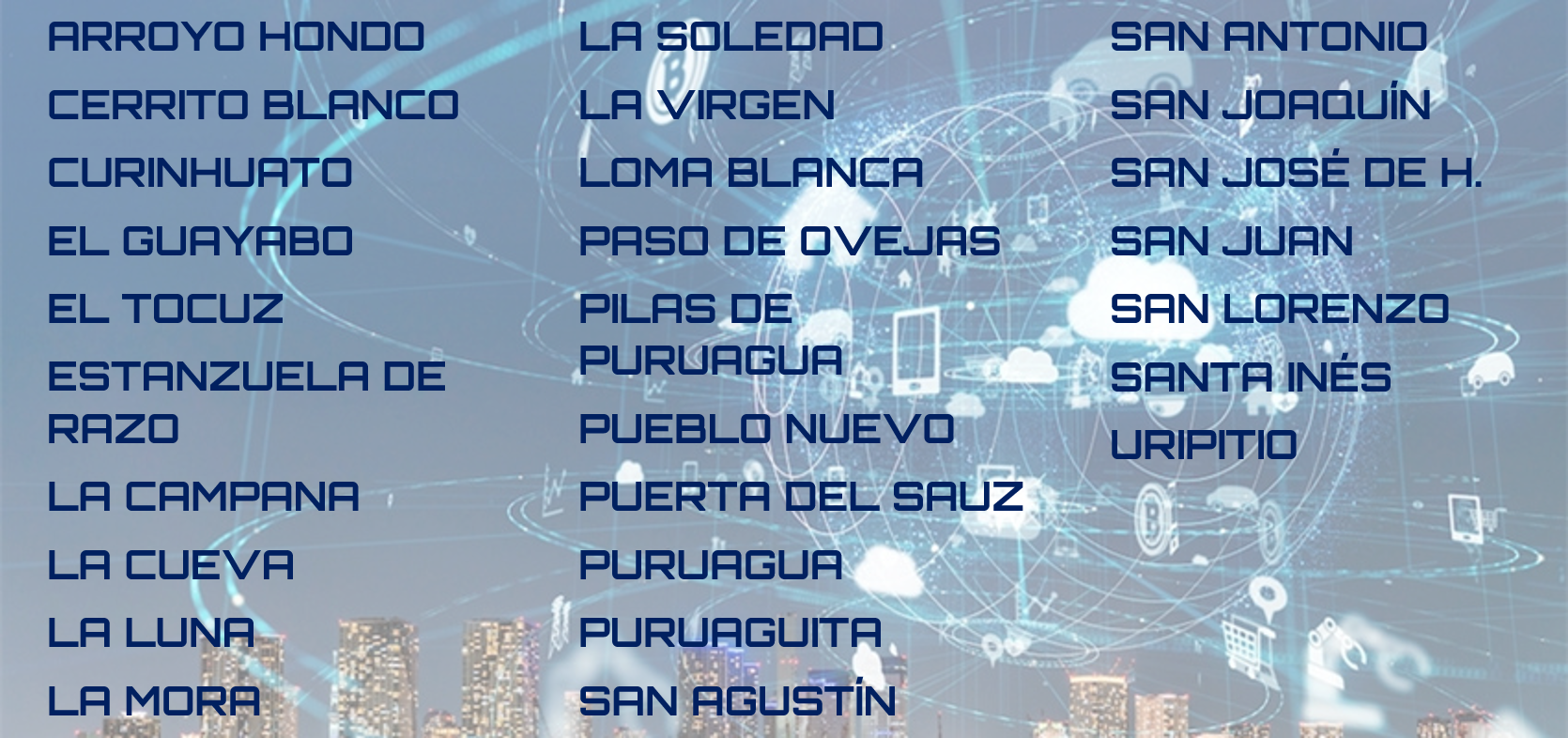 Localidades en los municipios de Tarandacuao, Jerécuaro y Maravatío con cobertura para los planes Inalámbrico.